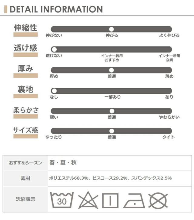 | 素材 | ポリエステル68.3%、ビスコース29.2%、スパンデックス2.5% |