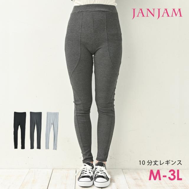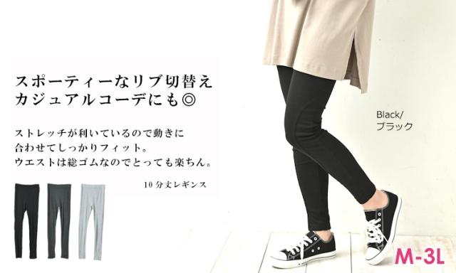 大きいサイズ レディース レギンス リブデザイン 10分丈 ウエストゴム メール便対応 ストレッチ レッグウェア ボトムス M-L/LL-3L ゆったりサイズ ぽっちゃり女子 プラスサイズ