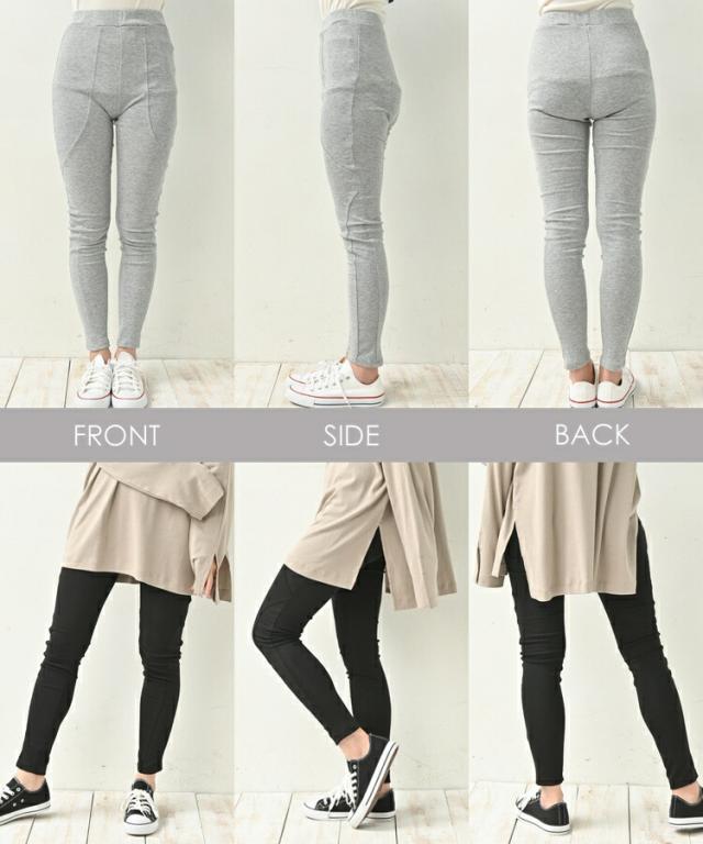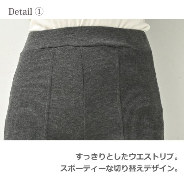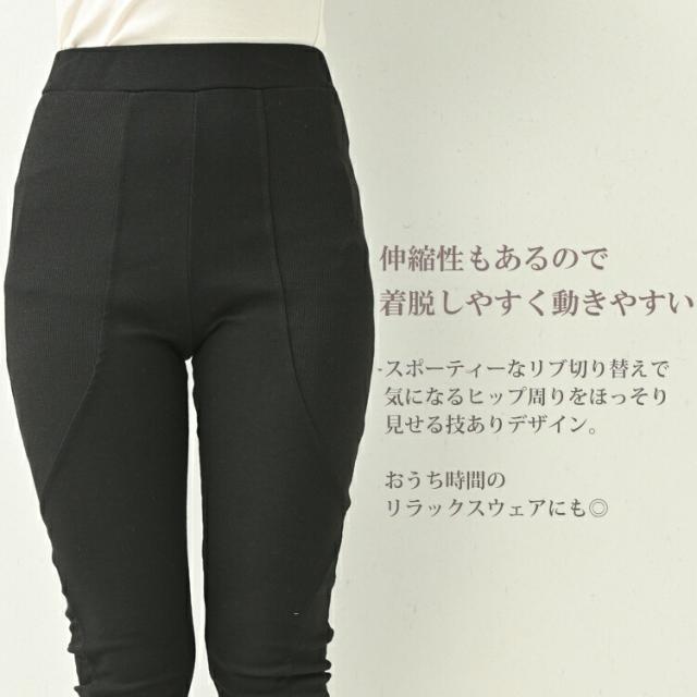 【メール便対応】おうち時間のリラックスウェアにも◎リブ切り替えデザイン10分丈レギンス。