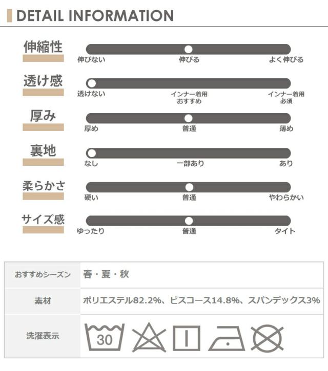 | 素材 | ポリエステル82.2%、ビスコース14.8%、スパンデックス3% |