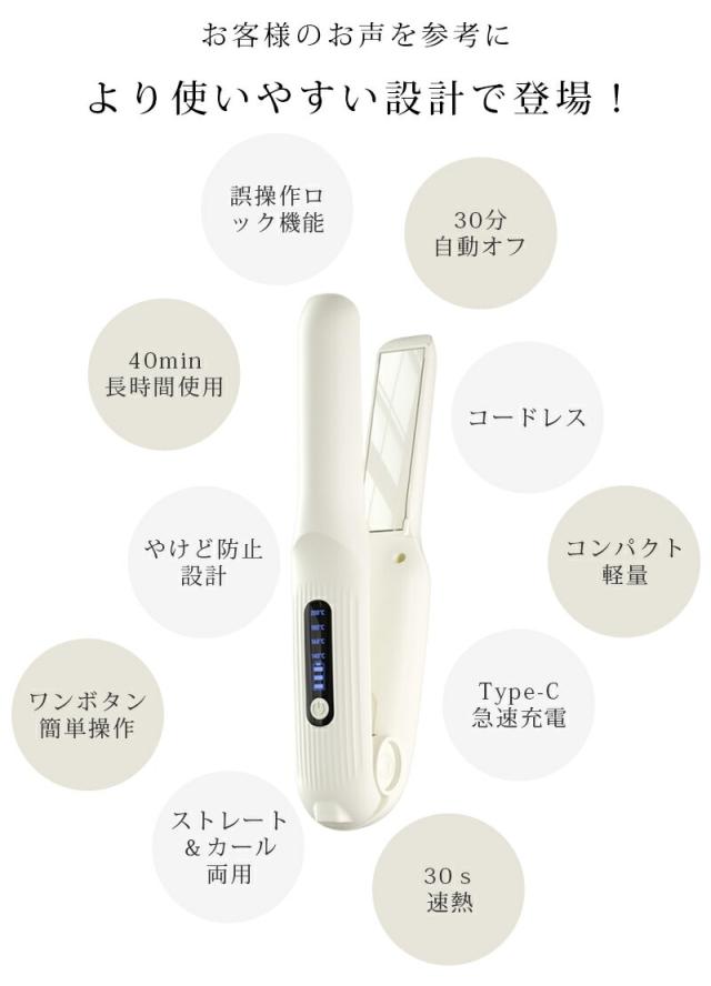 「クーポン配布中」「即納」ミニ ヘアアイロン コードレス ヘアアイロン ストレート ヘアアイロン USB充電式 ヘアアイロン 2way ストレート カール 前髪 4段階温度調節 ツヤツヤ髪 やけど防止 持ち運び便利 軽量 家庭 男女兼用 母の日 プレゼント