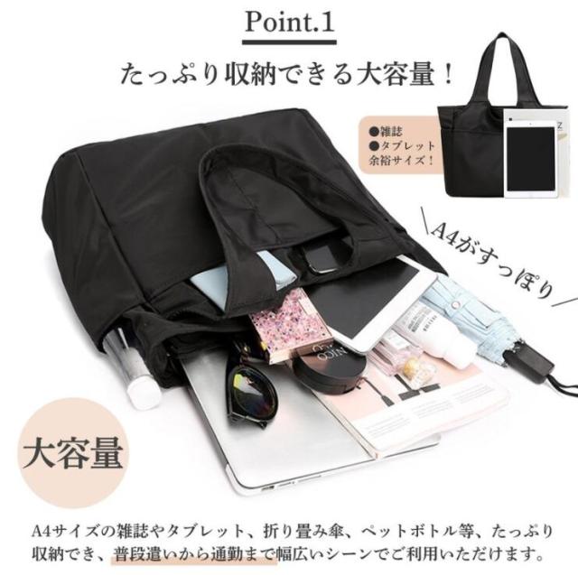 トートバッグ レディース a4 軽量 通勤 おしゃれ 大きめ 黒 軽い 撥水 ナイロン 大き目 縦 横 オシャレ トート バック