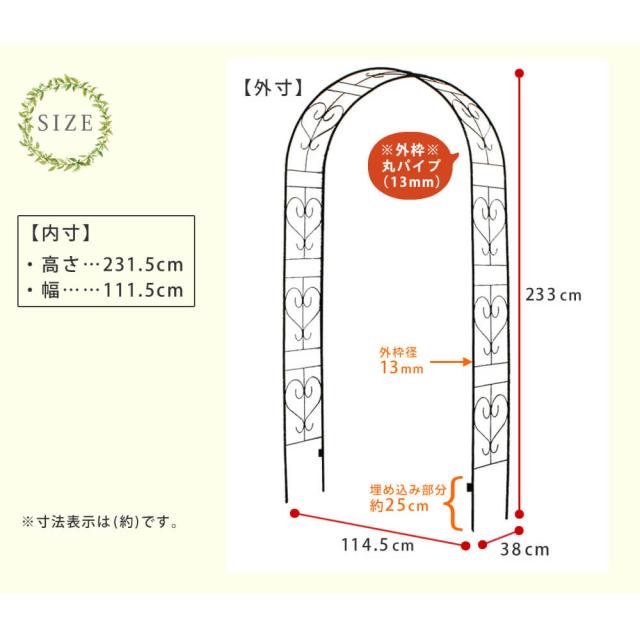 綺麗に並んだハートが、優雅で華のある空間を作るアイアンアーチです。