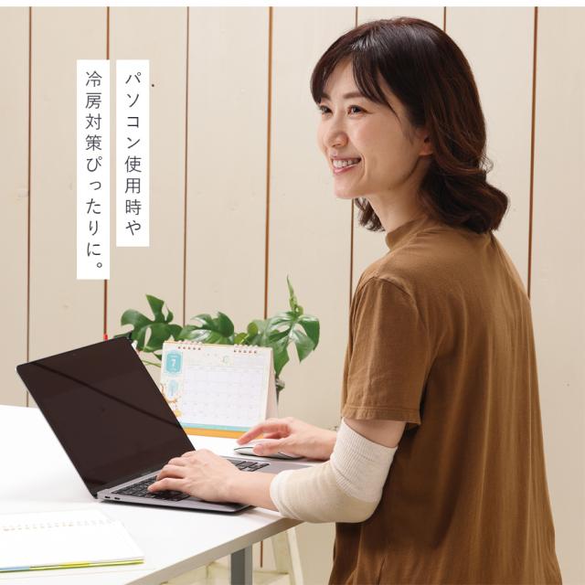 パソコン使用時のひじの保護や、冷房対策にもご着用いただけます。わずか60gなので軽くて、腕に負担がかかりません。肘が黒ずみ防止にも最適です。