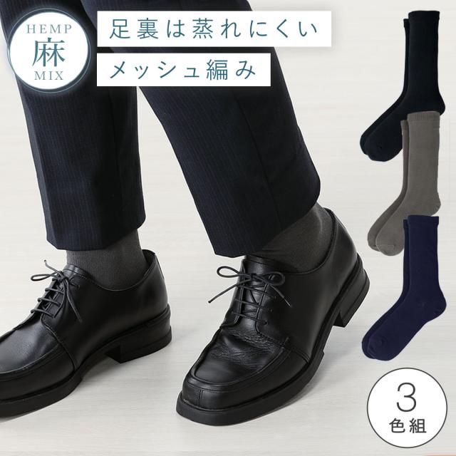靴下 メンズ 麻,靴下 メンズ ビジネス,靴下 メンズ 夏用,靴下,くつした,くつ下,ソックス,メンズ靴下,3足組,セット,日本製,クルー丈,麻混,麻,リネン,薄手,薄い,春夏,春,夏,夏用,暑い,季節,さらさら,サラサラ,サラっと,さらっとしている,さらり,サラリ,爽やか,さわやか,蒸れない,ムレない,蒸れにくい,ムレにくい,涼しい,涼しげ,通気性,風通し,風通しが良い,快適,履き心地,履き心地が良い,気持ちいい,肌触り,メッシュ,無地,履き口,ゆったり,口ゴム,くちゴムゆるめ,よく伸びる,足首,ゆるい,ゆるめ,足のむくみ,むくみ,伸びる,動きやすい,履きやすい,締め付けない,しめつけない,締めつけない,締め付け感なし,跡が残らない,跡がつかない,かかと,補強,丈夫,ブラック,黒,グレー,ネイビー,紺,モノトーン,洗い替え,コーディネート,スーツ,ビジネス,会社,仕事,オフィス,通勤,在宅,リモートワーク,テレワーク,新生活,入学式,入社式,冠婚葬祭,結婚式,葬式,大人,大人用,メンズ,男性,男性用,お年寄り,高齢者,シニア,20代,30代,40代,50代,60代,70代,80代,25cm,25センチ,26cm,26センチ,27cm,27センチ,25-27cm
