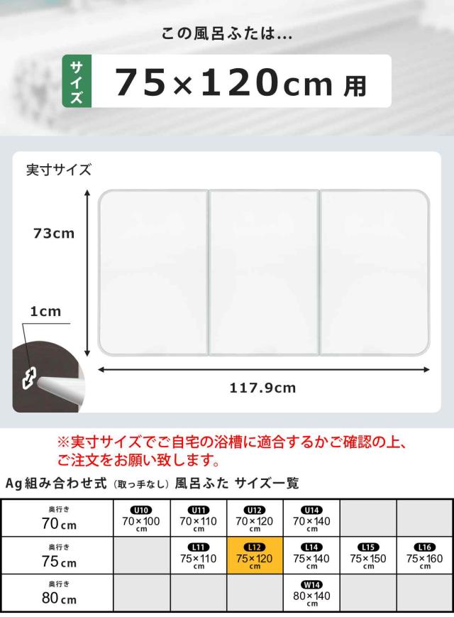 Ag銀イオン風呂ふた 掃除しやすい組み合わせタイプ L12