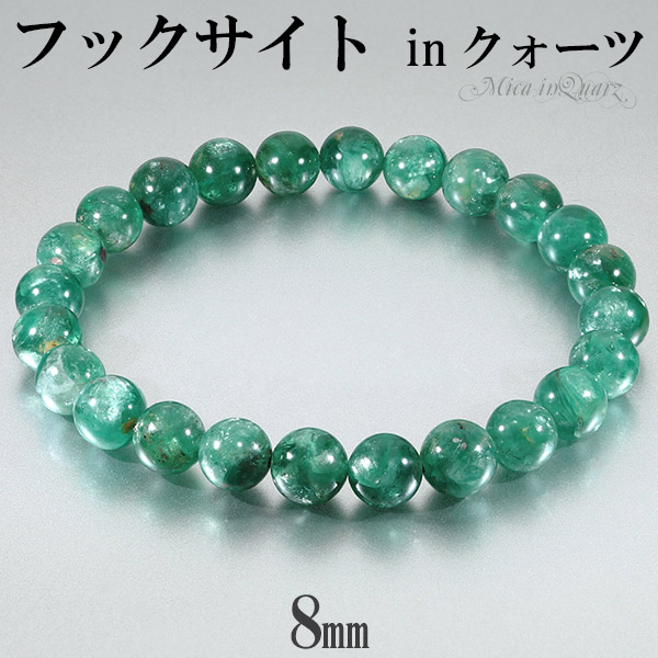フックサイト イン クォーツ ブラジル産 ブレスレット 8mm 18cm メンズM レディースL サイズ 天然石 パワーストーン マイカ 雲母 腕輪