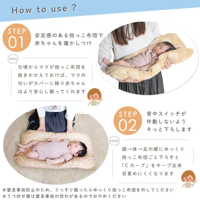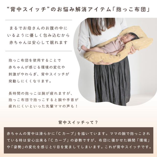 抱っこ布団で赤ちゃんを寝かしつけ、背中スイッチを刺激しないようにそっと下ろすだけで悩みを解消してくれる先輩ママたちおすすめの商品です。