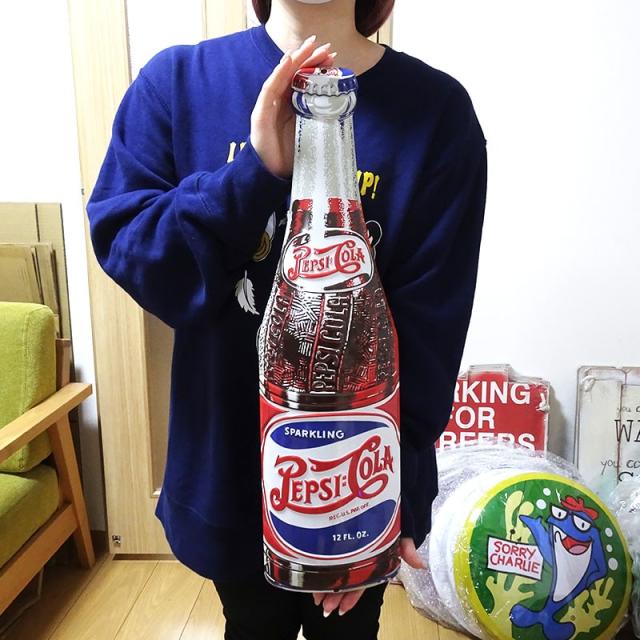 ペプシの瓶がそのままデザインされたブリキ看板。