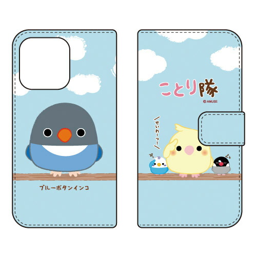 手帳型スマホケース ことり隊シリーズ ブルーボタンインコ / for iPhone 13 Pro Max/Apple iphone13promax ケース カバー アイフォーン13プロマックス ケース カバー アイフォン 13 送料無料