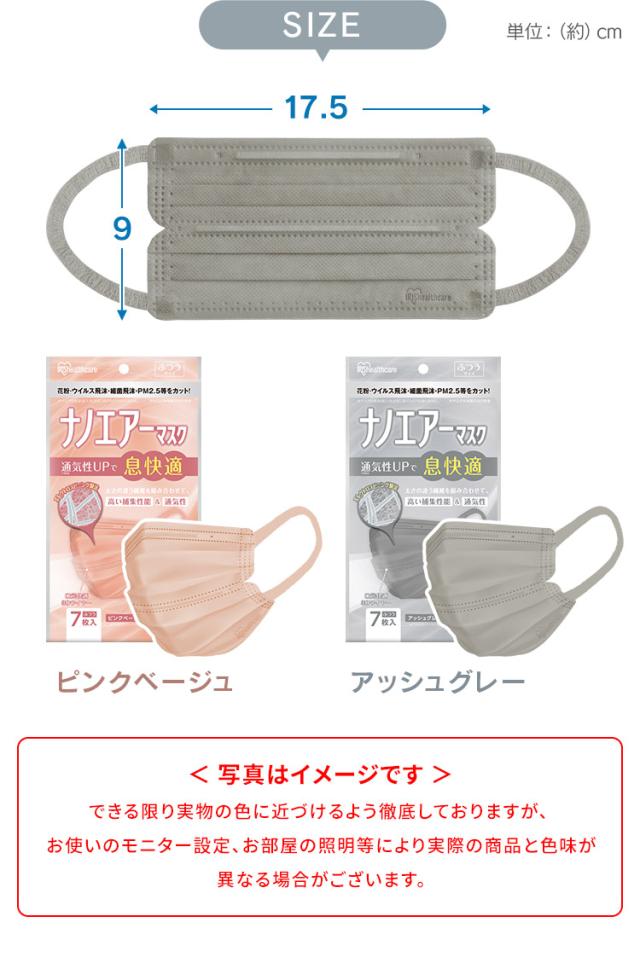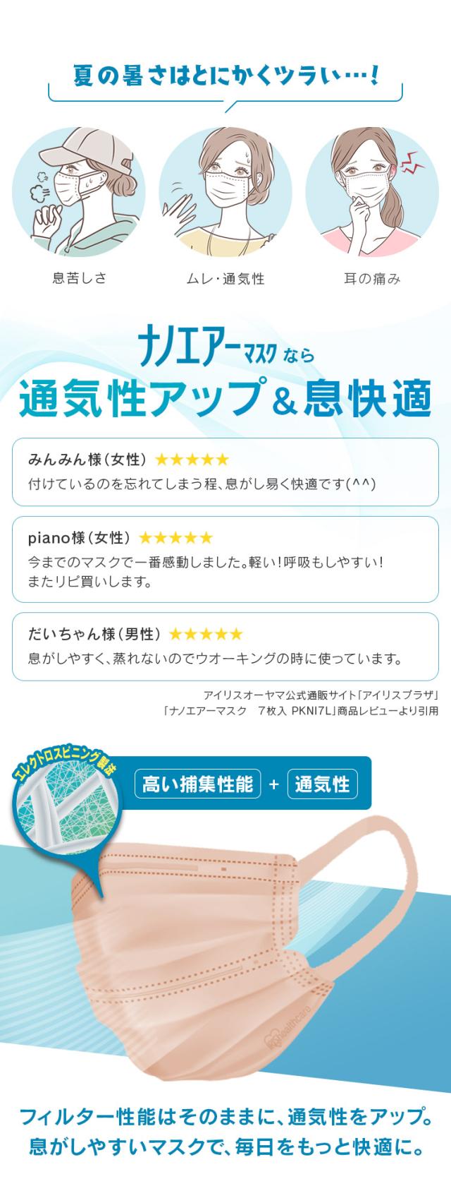 マスク 不織布 夏用マスク 夏用 通気性 涼しい ナノエアーマスク ふつうサイズ PK-TN7L プリーツ 7枚入り マスク ナノエアー 色付き カラーマスク 不織布 個別包装 個包装 使い捨て 風邪 花粉 アイリスオーヤマ