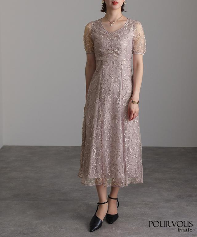 169221410 パーティードレス 結婚式 ワンピース フォーマルドレス ドレス お呼ばれ 小柄 大きいサイズ 20代 30代 40代 春 夏 秋 冬 二次会 体型カバー 袖あり 小さいサイズ 韓国 低身長 150cm お呼ばれ 上品 フォーマル 総レース atlo 長袖 上品 ロング丈 半袖 aライン 50代