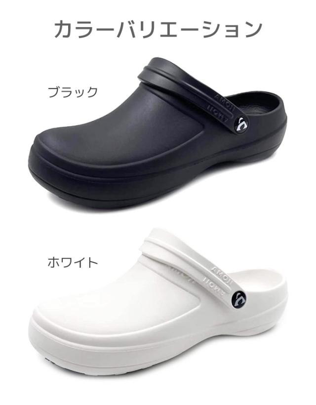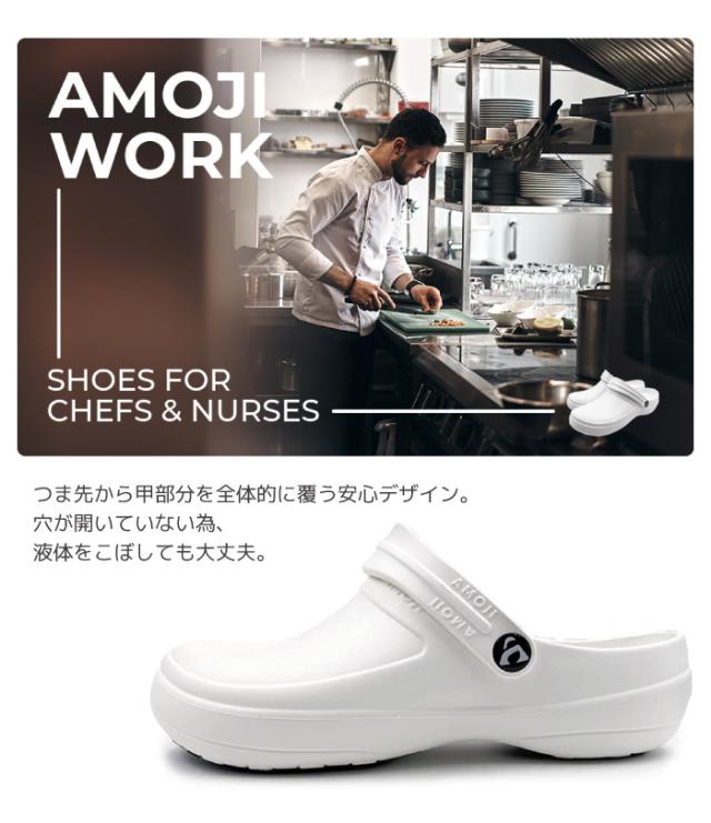 AMOJI アモジ ワークサンダル ナースサンダル メンズ レディース WK203 クロッグサンダル スリッパ サボ オフィスシューズ 仕事履き ブラック ホワイト 厨房用 かかと 2way