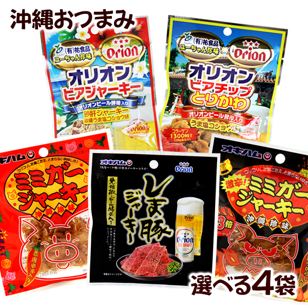 おつまみミニサイズ 選べる4袋セット /ミミガージャーキー しま豚ジャーキー とり皮ジャーキー 砂肝ジャーキー オキハム 【M便】