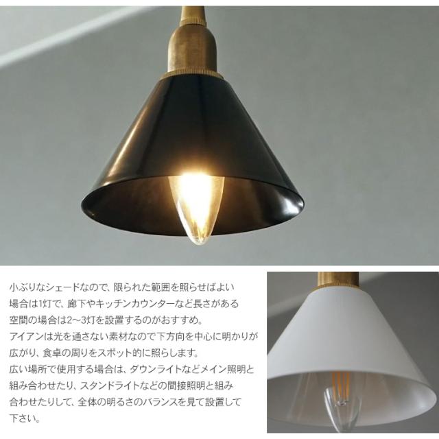 シェードが小ぶりなので、玄関やお手洗いなど限られた範囲を照らせばよい場合は1灯で、廊下やキッチンカウンターなど長さがある空間の場合は2〜3灯を設置するのがおすすめです。