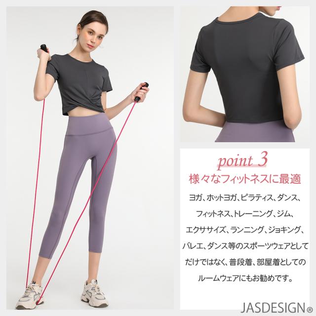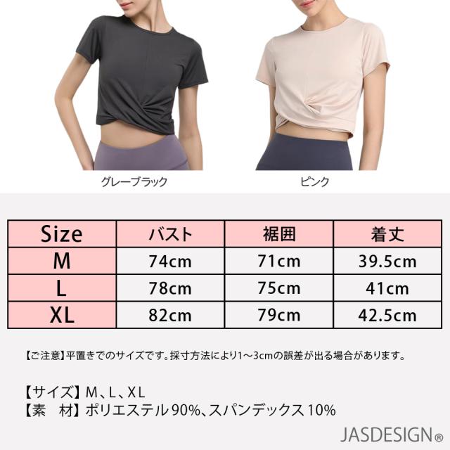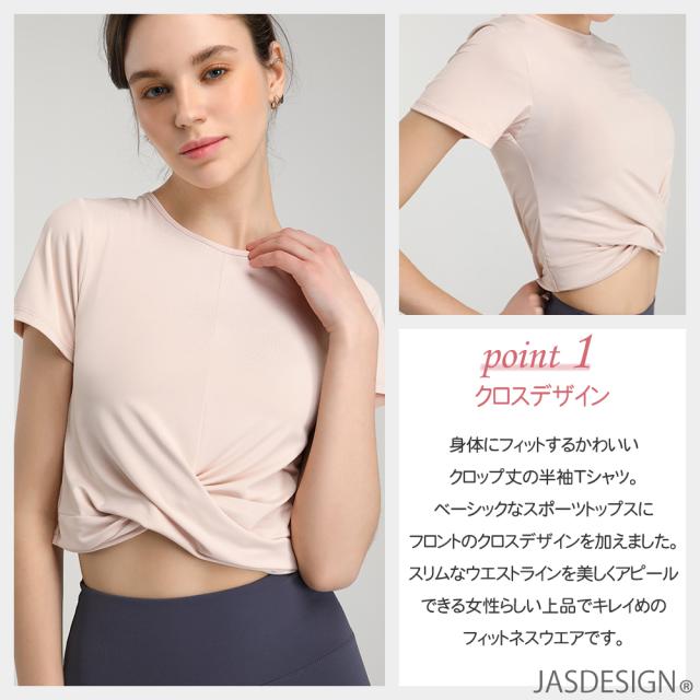 ヨガウェア ピラティス ウェア トップス 半袖 レディース ショート丈 Tシャツ ツイストデザイン フィットネス シャツ へそ出し 可愛い おしゃれ おすすめ ヨガ ホットヨガ バレエ ダンス フィットネス ジム エクササイズ かわいい 春 夏 秋 冬 送料無料 JM-208