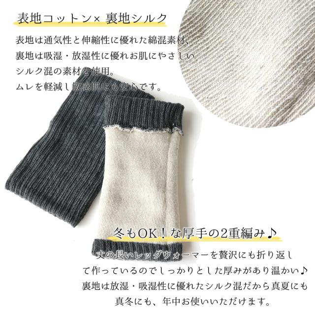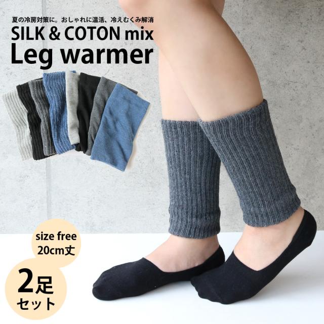 送料無料 レディース レッグウォーマー 20cm 内側シルク 綿混 2足セット 温活 シンプル 夏 冬 通年用 絹 コットン 温める かわいい 冷え取り 冷え 足 寝るよう むくみ 妊婦 妊娠 締め付けない アームカバー 2way