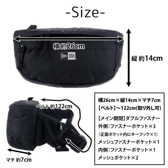 | 備考 | 【メイン開閉】ダブルファスナー 外側/ ファスナーポケット×4(キーフック×1) 内側/ ファスナーポケット×1 メッシュポケット×2 ー POINT ー ・小物の出し入れに便利な外側ポケット ・外側ポケットの内部にキーフックを配備 ・上部の収納には耐候ジップを採用 ・小物の収納に便利なインナーポケット ・ストラップ横のサイドポケット ・リフレクティブ仕様のニューエラロゴ (カラーによりファスナーの仕様やベルト部分のポケットの素材等が一部異なります) キーワード: 10代 20代 30代 黒 サブバッグ ストリート カジュアル スポーツ ハイキング 旅行 バイク 自転車 小さめ コンパクト ミニバッグ 高校 入学祝い 就職祝い 自分用 ご褒美 誕生日 プレゼント ギフト おすすめ オススメ ラッピング ラッピング無料 メンズ 彼氏 レディース 彼女 お揃い ペア 男性 女性 通勤 通学 ビジネス 学生 ブランド ロゴ ポイント消化 ニューバッグワカマツ ニューバックワカマツ | ||