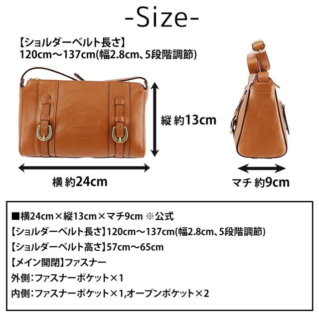 | サイズ(約) ※当店実寸値 | 公式サイズ 横24cm×縦13cm×マチ9cm 【ショルダーベルト長さ】120cm〜137cm(幅2.8cm、5段階調節) 【ショルダーベルト高さ】57cm〜65cm | ||