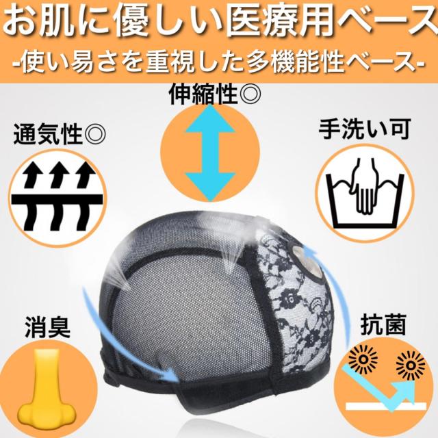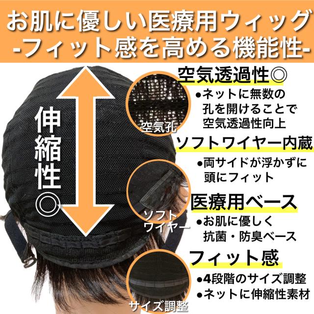 | 特徴3 | 裏地に無数の空気孔を用いている為、空気透過性がとてもよく、快適なウィッグライフ |