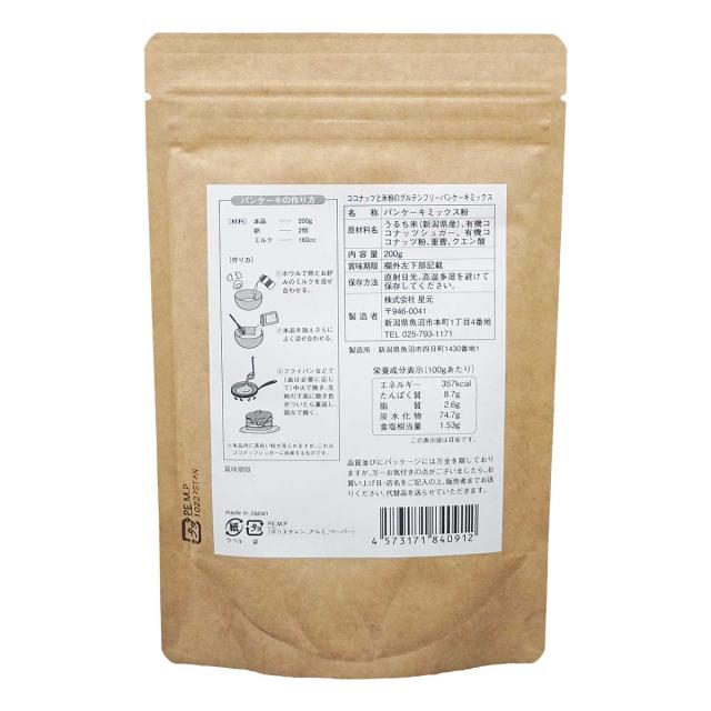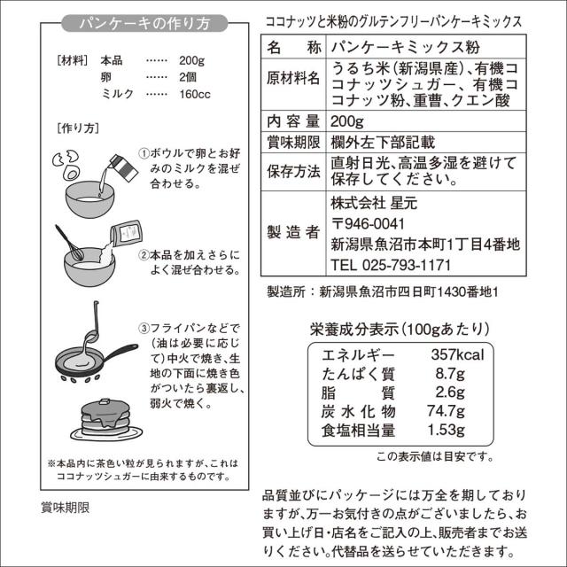 グルテンフリー パンケーキミックス 200g 国産米粉 有機ココナッツ粉 ホットケーキミックス アレルギー対策 送料無料 メール便 ダイエット食品 美容 健康管理 お菓子 クッキー スイーツ作り 非常食 保存食