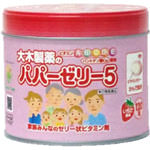 パパーゼリー5は、育ちざかりの幼少年期から、年配の方まで、欠乏しがちなビタミンA、D2、C、E、B6とパントテン酸カルシウムをゼリーの中にひとまとめにした栄養剤です。すっきりした甘さのいちご風味のゼリータイプですから、小さなお子さまにも水なしで、かんで容易に服用していただけます。