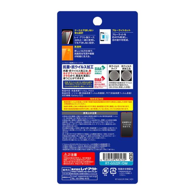 Galaxy S22 SC-51C SCG13 保護フィルム 衝撃吸収 ブルーライトカット 光沢 抗菌 抗ウイルス 指紋認証対応