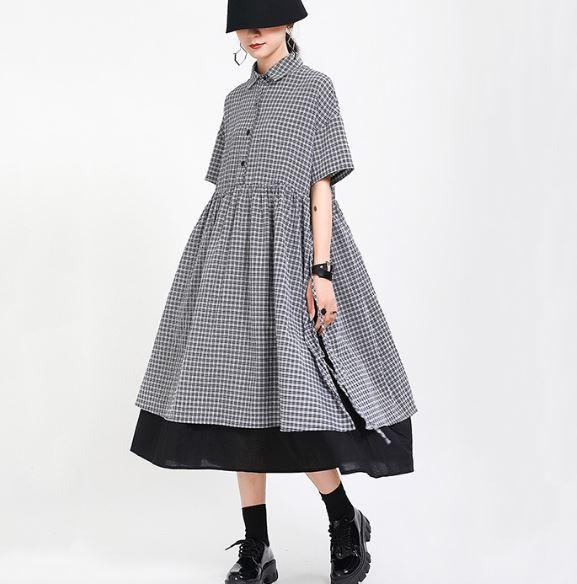 ワンピース ロング 半袖 シャツワンピース レディース モード系 個性的 ミドル丈 フェイクツ2ピース Aライン 大人女子 ゆったり 体型カバー シャツワンピ 春夏 40代 30代 20代