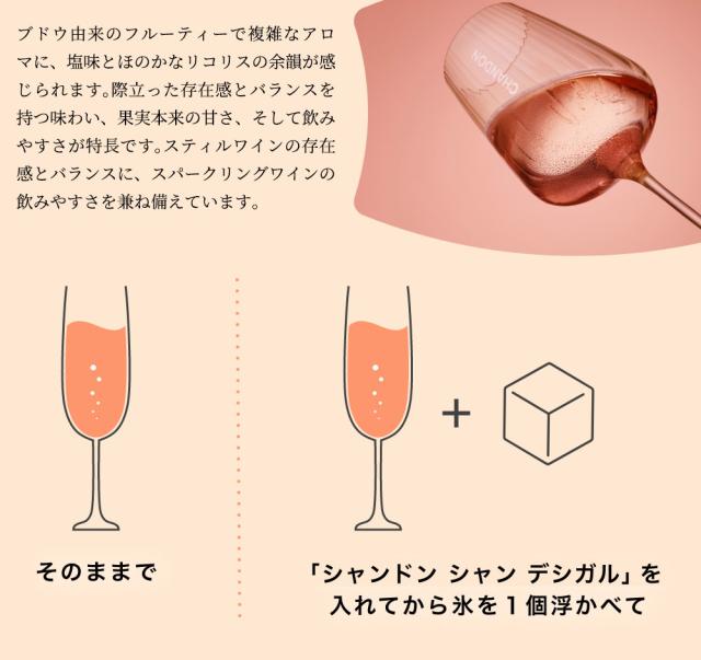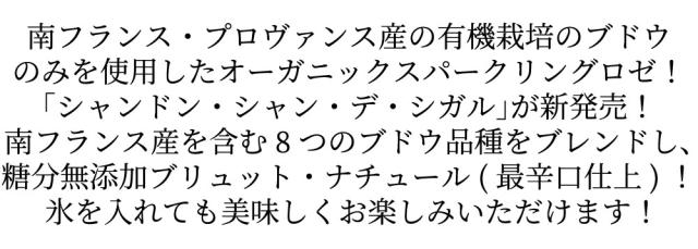 南フランス・プロヴァンス産の有機栽培のブドウのみを使用したオーガニックスパークリングロゼ!「シャンドン・シャン・デ・シガル」が新発売!南フランス産を含む8つのブドウ品種をブレンドし、糖分無添加ブリュット・ナチュール(最辛口仕上)! 氷を入れても美味しくお楽しみいただけます!