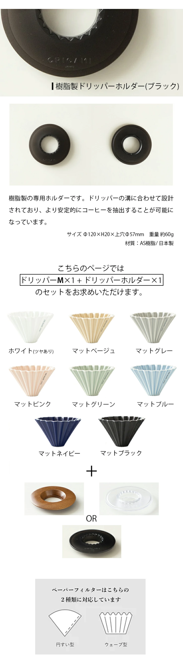 【2点セット】ORIGAMI オリガミ ドリッパー M 2〜4杯用 (日本製) + ドリッパーホルダー セット【正規品販売店】※ドリッパーはORIGAMIの刻印入り