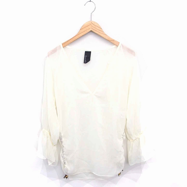【中古】ラグナムーン LagunaMoon チュニック ワンピース ひざ丈 シースルー Vネック 薄手 長袖 F アイボリー /TT42
