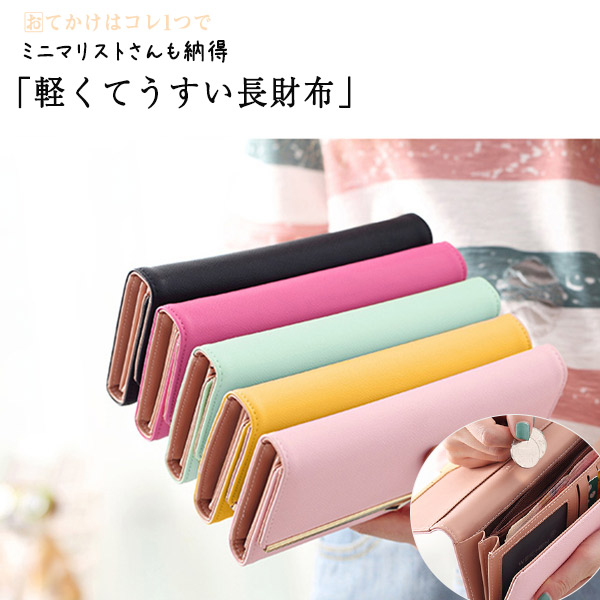 ポイント超超祭 クーポン利用で最大10%オフ中ロングウォレット シンプル 財布 長財布 レディース 通帳ケース 大容量 三つ折り 多機能 無地 レシート 合皮 コイン ファスナー 通帳入れ