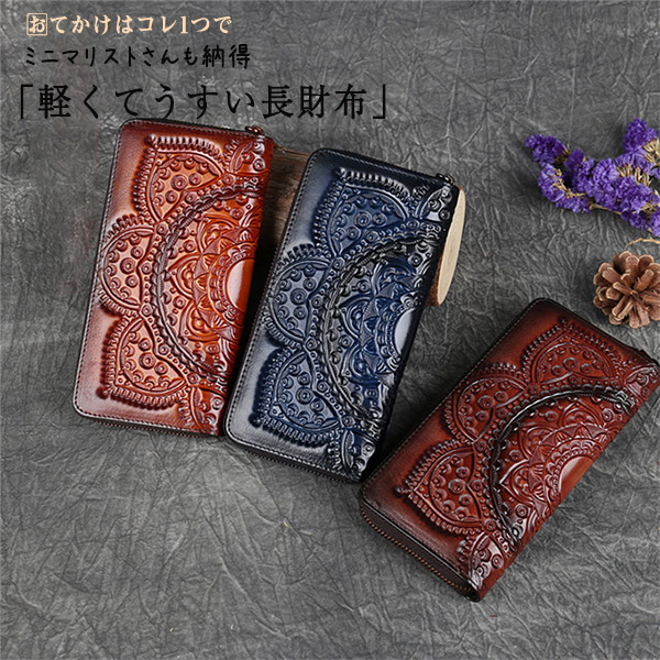 店長イチオシ 通帳ケース ロングウォレット シンプル 財布 長財布 レディース 大容量 携帯入れ 便利 多機能 民族風 牛革 柄 コイン ファスナー 通帳入れ