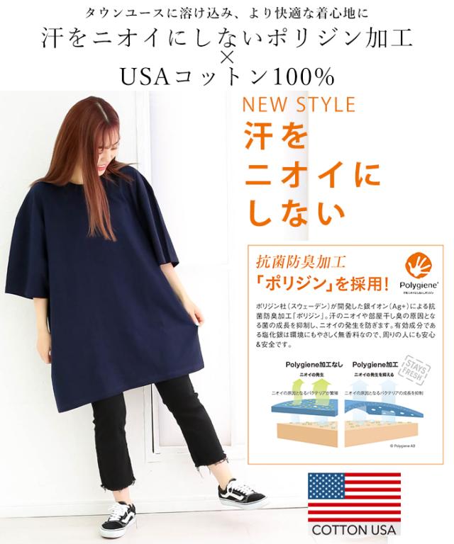 当店大人気のシンプル無地ビッグTシャツ、抗菌防臭加工「ポリジン」に、タウンユースに使いやすいUSAコットン100%の新作が登場!! やや厚手の6.2ozの生地は、肌馴染みが良く適度なハリ感のある質感。高品質なUSAコットンにポリジン加工を施し質も機能性も兼ね備えた1着です。トレンドのゆったりオーバーサイズなビッグTに使える、豊富なサイズ展開も嬉しいポイント。シンプル無地なので、どんなコーデにもOK!! ポリジン社(スウェーデン)が開発した銀イオン(Ag+)による抗菌防臭加工「ポリジン」。汗のニオイや部屋干し臭の原因となる菌の成長を抑制し、ニオイの発生を防ぎます!!オシャレと機能性を合わせたTシャツを是非お試しください!!色違い購入・まとめ買いもできるようにお値段もお手頃なプチプライスです!