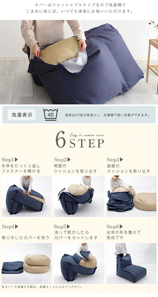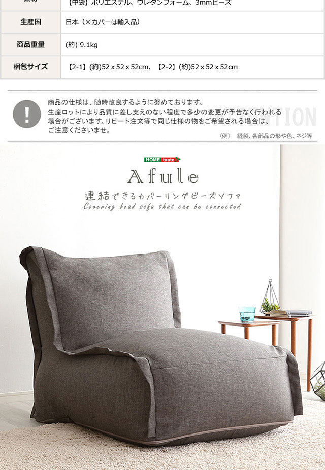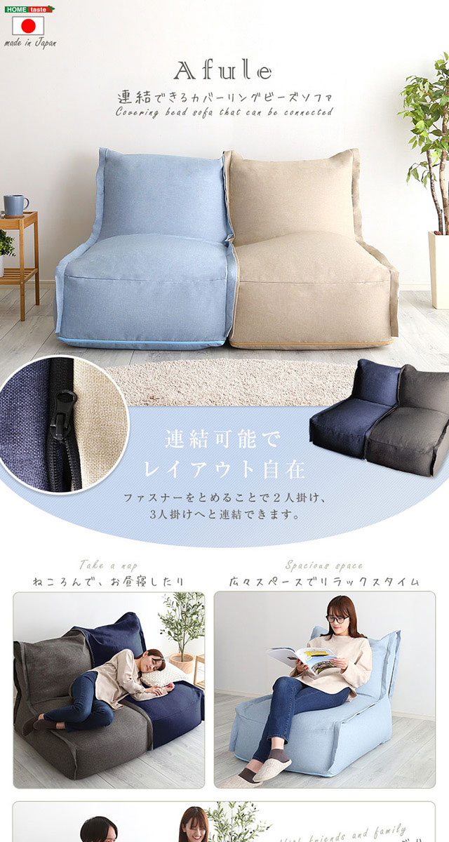 連結できる ビーズクッションソファ 一人掛け 【送料無料】 一人用 ビーズソファー 洗える カバー付き 日本製 国産 背もたれ付き