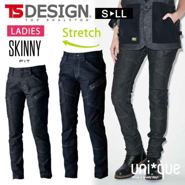 レディース スリム カーゴパンツ TSデザイン メンズ 51441 オールシーズン 作業着 デニム ストレッチ アウトドア おしゃれ ワークパンツ 作業服