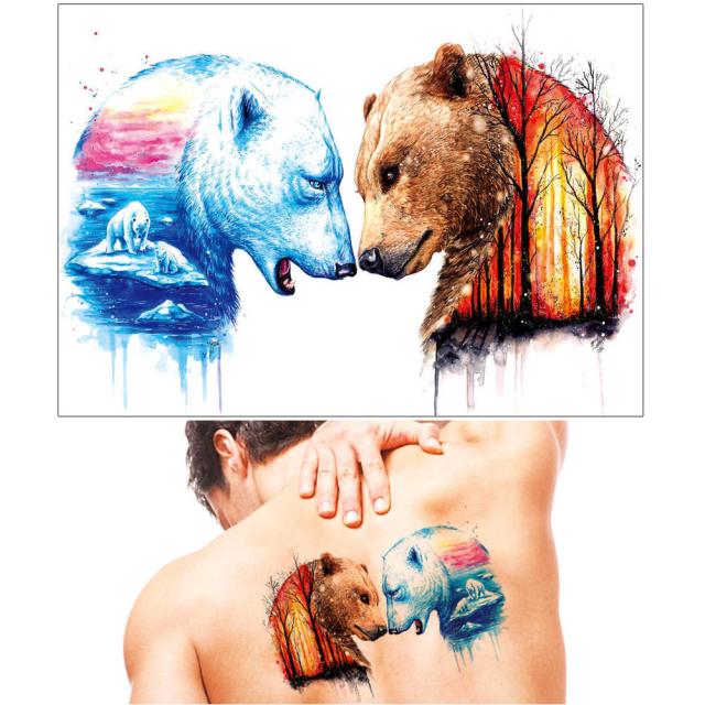 大きいサイズのカラフルなホッキョクグマとヒグマをデザインした水で貼るフェイクタトゥーステッカー。