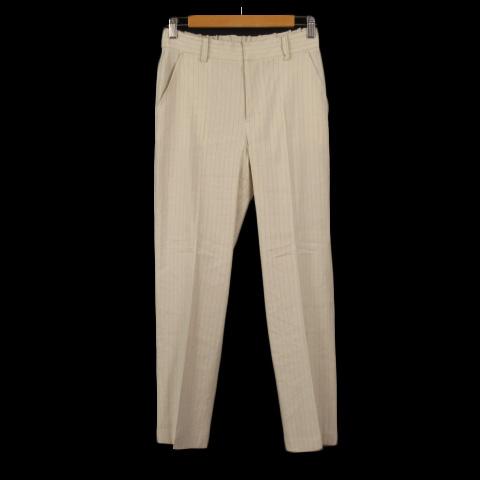 【中古】エルミダ EL MIDAS パンツ テーパード ストライプ リネン 38 ベージュ レディース