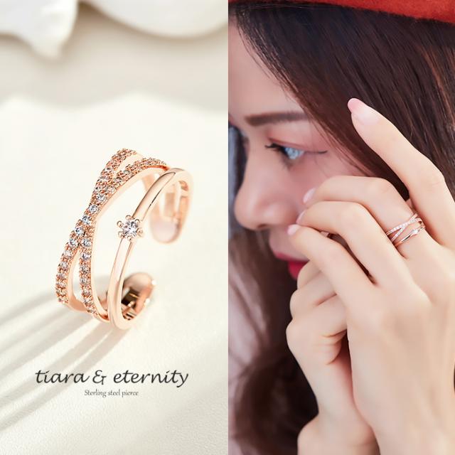 サージカルステンレスリング [Diamond tiara ring] 316L ステンレス製 華奢リング 極細リング ピンキーリング ミディーリング ファランジリング レディース 指輪 アクセサリー キラキラ 細反射加工 ニッケルフリー 金属アレルギー対応