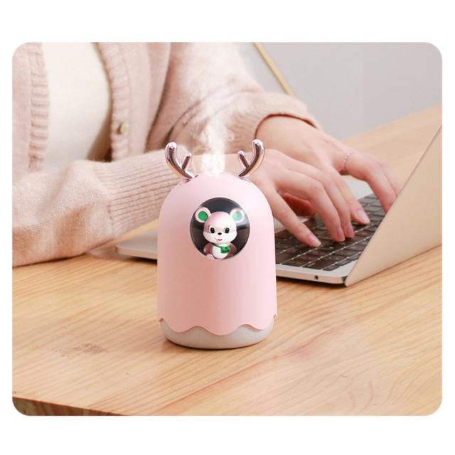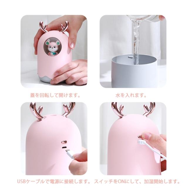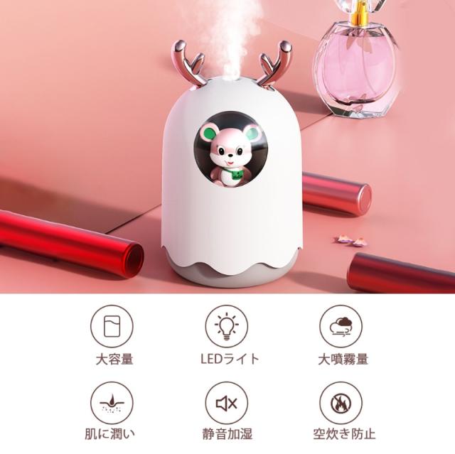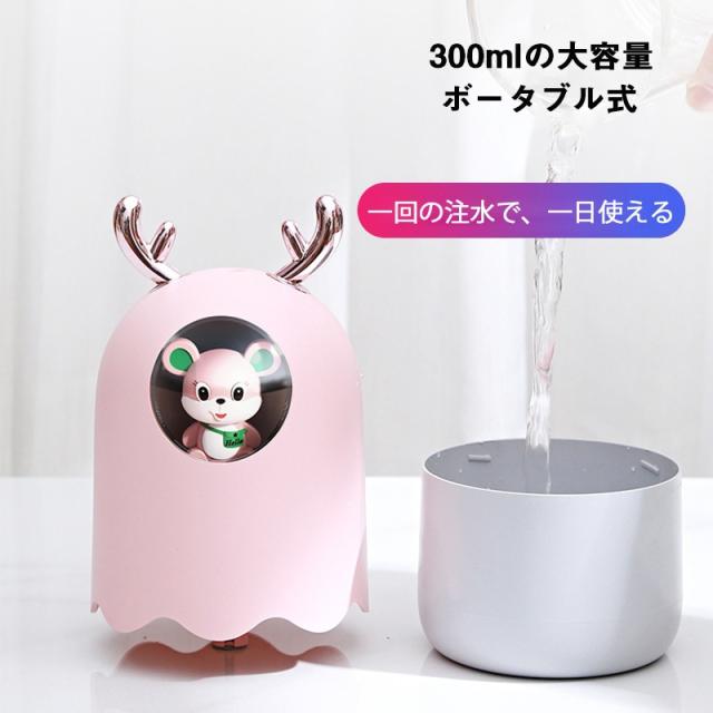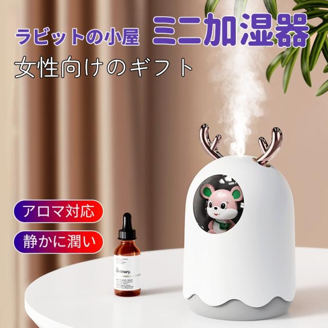 卓上超音波式加湿器 300ML ミニ加湿器 携帯加湿器 LED付き USB充電式 卓上加湿器 アロマ加湿器 アロマ対応 アロマディフューザー 空気清浄機 ギフト 萌え 兎形