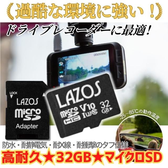 LAZOS 高耐久 マイクロSDカード 32GB UHS-I CLASS10 メモリーカード Nintendo Switch ニンテンドー3DS 任天堂 スイッチ ドライブレコーダー デジタルカメラ ビデオカメラ microSDカード microSDカード アダプター付 ギャラクシー アンドロイド スマートフォン スマホ 対応