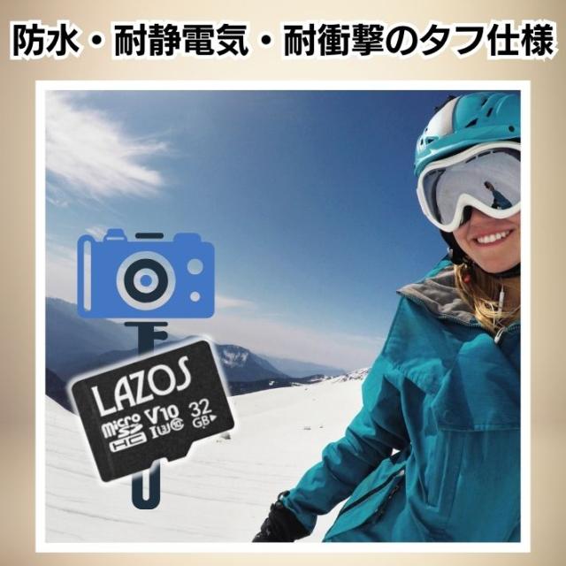 LAZOS 高耐久 マイクロSDカード 32GB UHS-I CLASS10 メモリーカード Nintendo Switch ニンテンドー3DS 任天堂 スイッチ ドライブレコーダー デジタルカメラ ビデオカメラ microSDカード microSDカード アダプター付 ギャラクシー アンドロイド スマートフォン スマホ 対応 防水 耐X線 耐衝撃機能