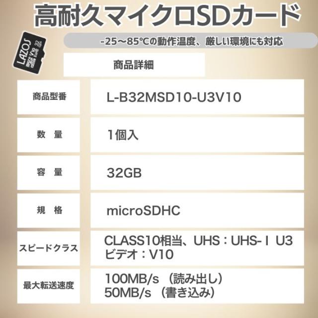【商品説明】Lazos microSDXCメモリーカード L-B32MSD10-U3V10 は UHS-I U3 CLASS10 V10対応 の高速&高耐久モデル。Nintendo Switch や ドライブレコーダー・監視カメラ・アクションカメラ・スマートフォン・タブレット など、さまざまな機器で安定した動作を実現!