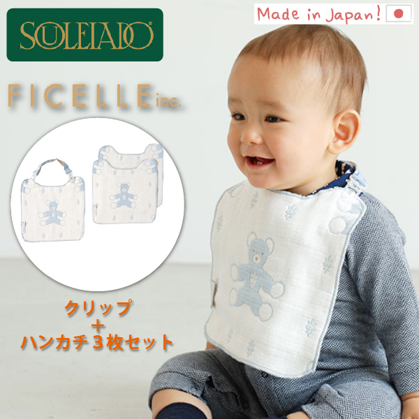SOULEIADO ソレイアード クリップ&ハンカチスタイ ブルーセット ふくふくガーゼ 6重ガーゼ Ficelle フィセル 日本製 マルチクリップ おしゃぶりホルダー