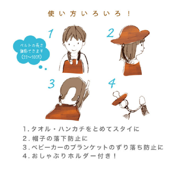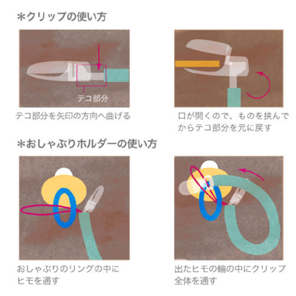 マルチクリップはスタイ以外にもおしゃぶりホルダーや帽子止めとしても幅広く使えるとても便利なアイテムです。