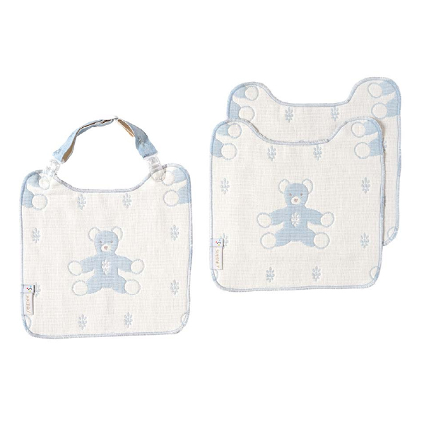 愛らしいクマがポイントのガーゼのハンカチは3枚セットなので、汚れてもすぐに取り換えることができます。