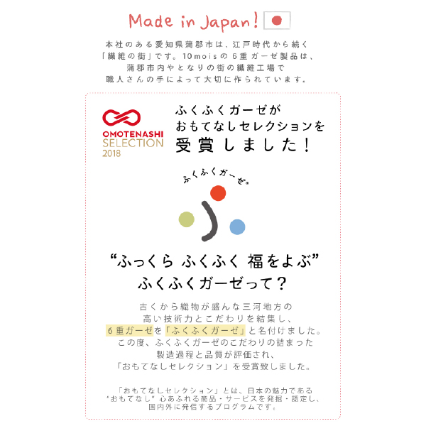 2018年に「おもてなしセレクション」を受賞した「ふくふくガーゼ」は、ご自宅用にもギフトにもおすすめです。