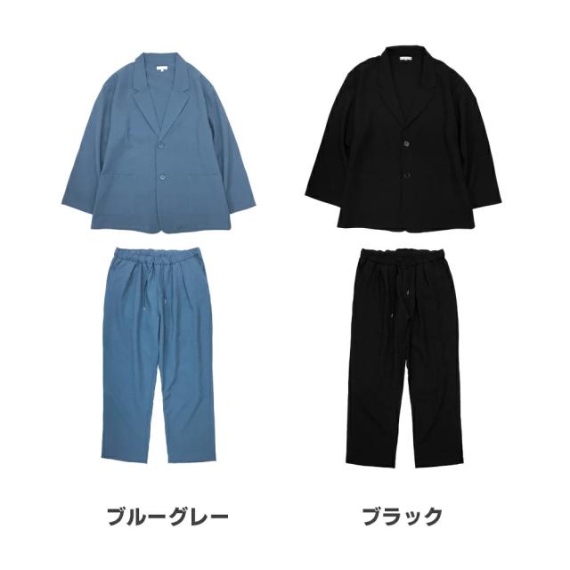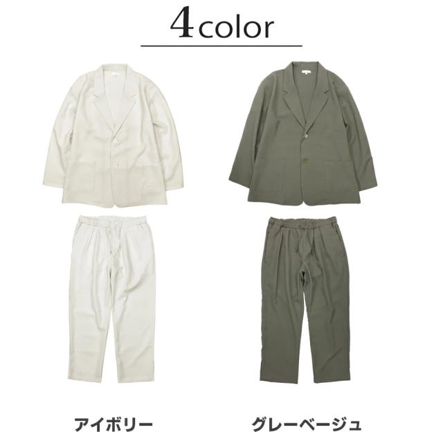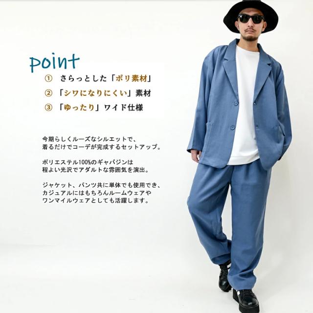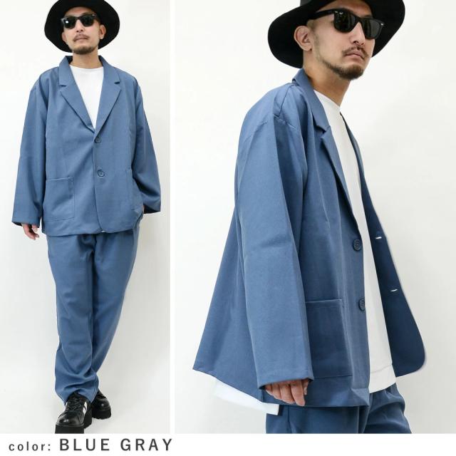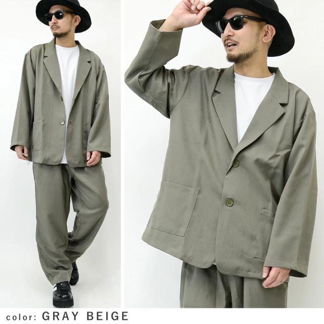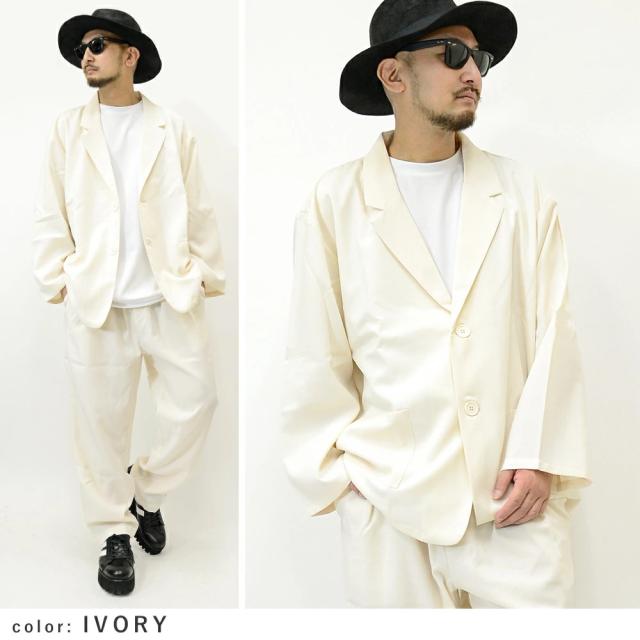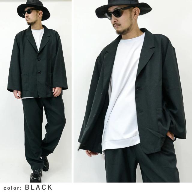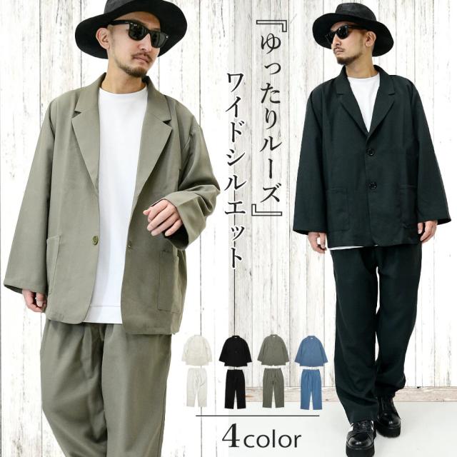 【閉店セール】ポリiギャバ素材 ワイドテーラード ワイドパンツ 上下セット60823メンズ セットアップ ワイドシルエット ゆったり ルーズ スーツ ビッグシルエット 2Bジャケット ワイドパンツ イージーパンツ ライトアウター 上下セット ジャケットパンツセット 上下 M L LL