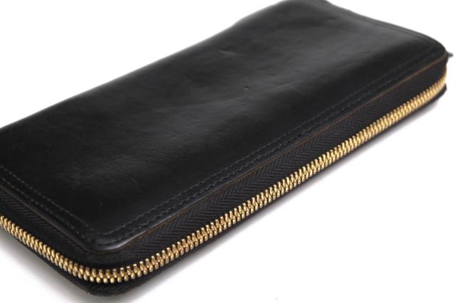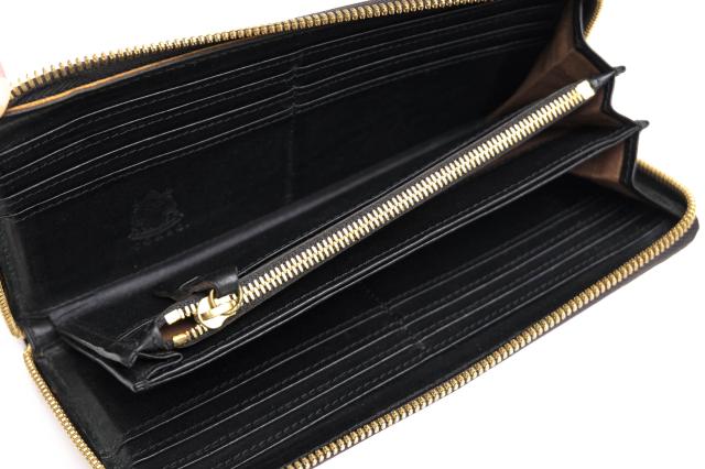 ブランドを象徴するロングセラーシリーズ。使用している革は、バケッタ製法によるイタリアンオイルレザー。使い込むにつれ さらに魅力を増していきます。内側も本革で仕上げ、太さとピッチの違う2本の糸によるダブルステッチも美しいです。外装にはウォレットコードが付けられる金具が付いています。
