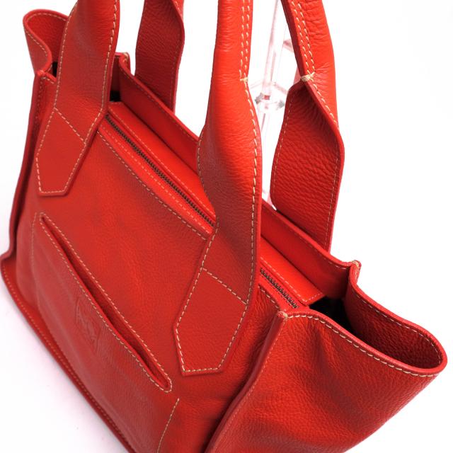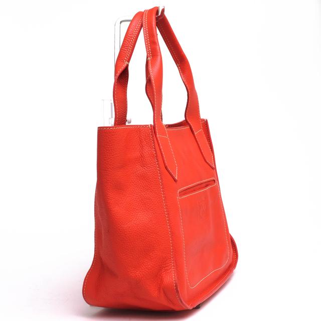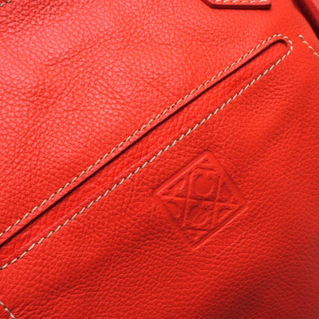 鮮やかなオレンジのカラーリング、ホワイトステッチが映え、ファッションの差し色に最適。A4サイズも楽々収納可能で、ビジネスシーンやデイリーユースにご活用いただけるアイテムです。